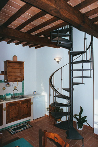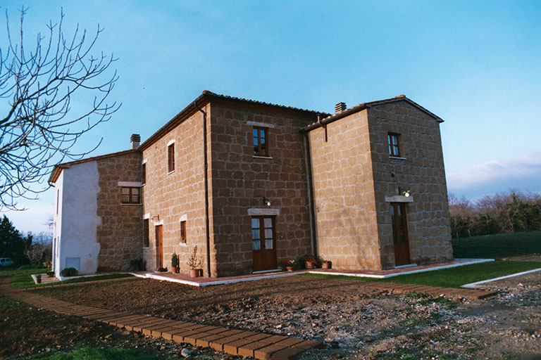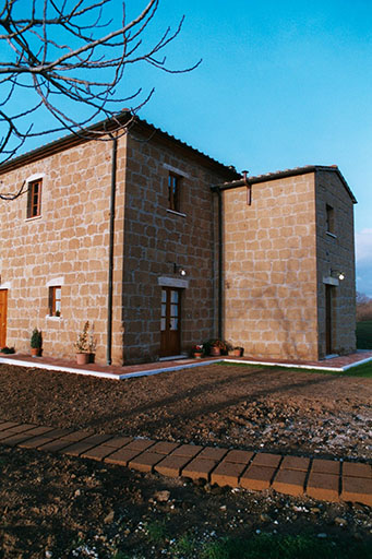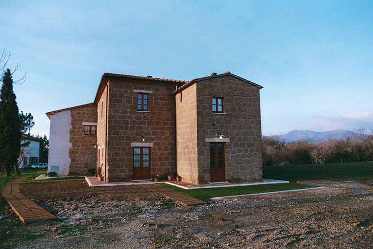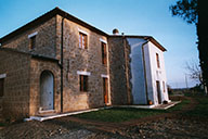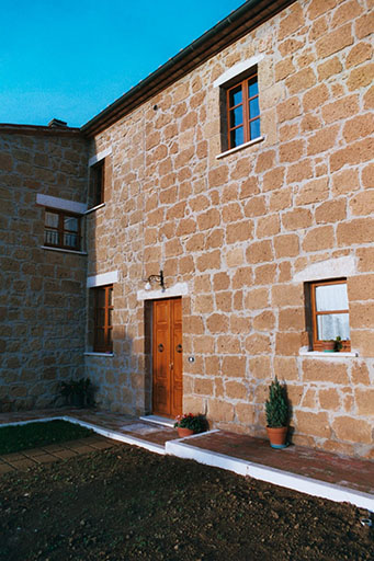 Farm in the country is characterized by an old building that once housed a school.
